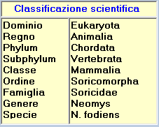 ![]() ![]() Nella Sistematica sono state descritte tre sottospecie: Neomys fodiens bicolor (non molto considerata) Neomys fodiens fodiens Neomys fodiens niethammeri Nella Lista Rossa di IUCN specie è rischio minimo di estinzione